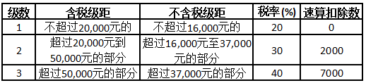 1、表中的含税级距、不含税级距,均为按照税法规定减除有关费用后的所得额。